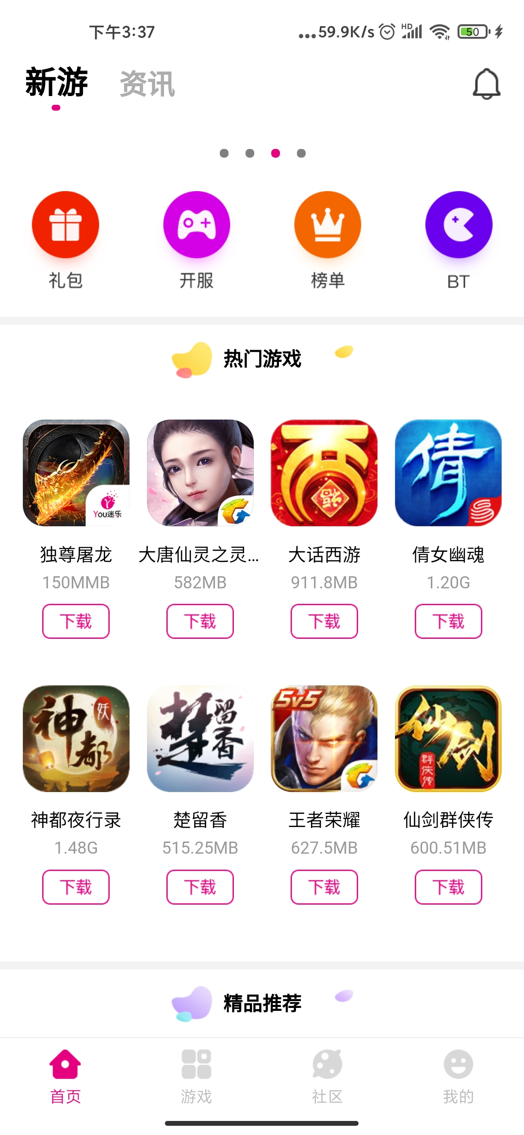 注意不自带任何游戏,本演示内的游戏均为网上游戏素材,所有游戏、礼包、资讯内容需要自行后台上传管理