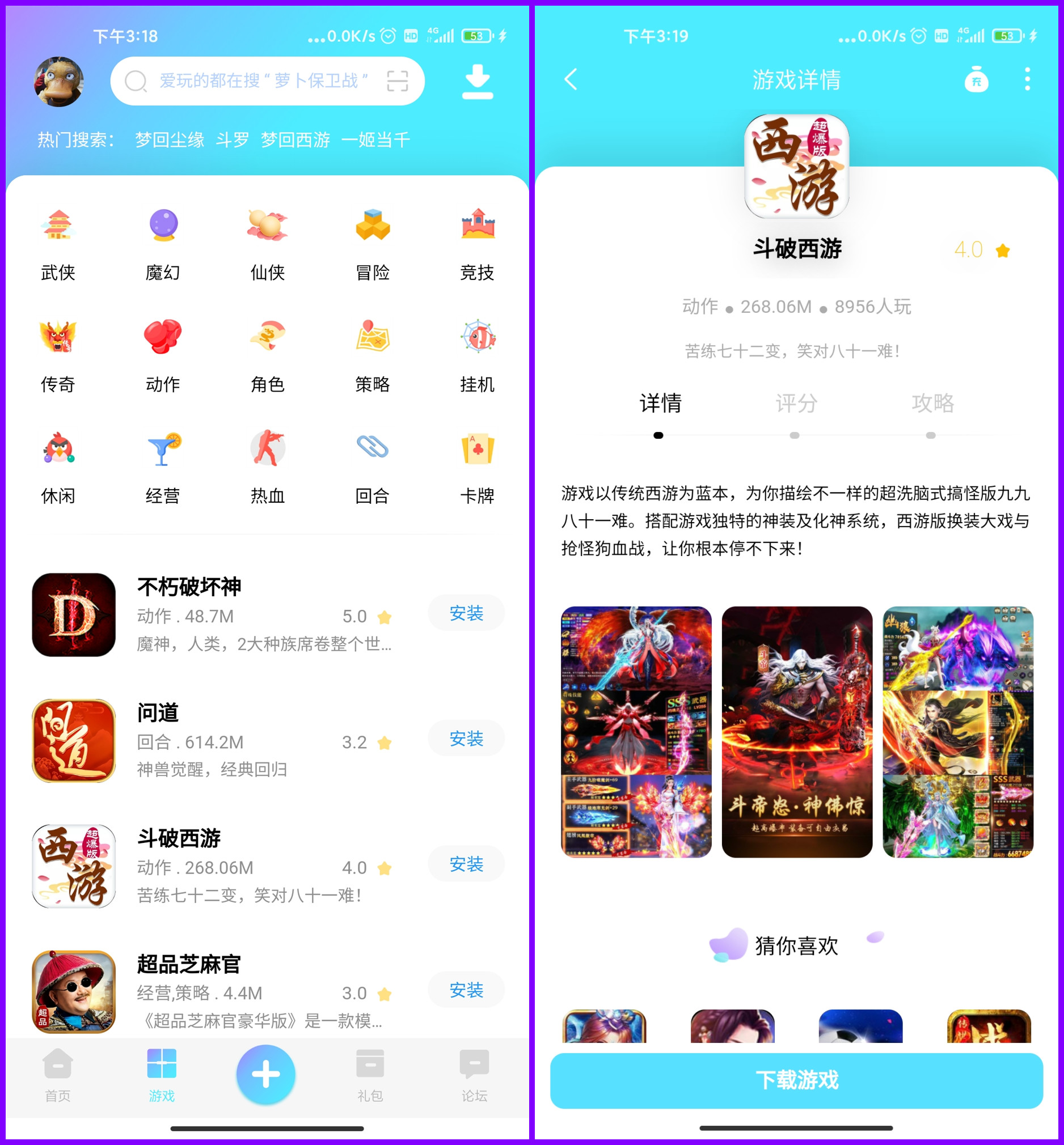 3.主要功能聚合多平台游戏统一推广、支持折扣、H5游戏上传(游戏类型标签自定义上传)、多平台不同折扣充值、礼包、资讯、开服表、论坛发帖、平台币等等其他功能可定制